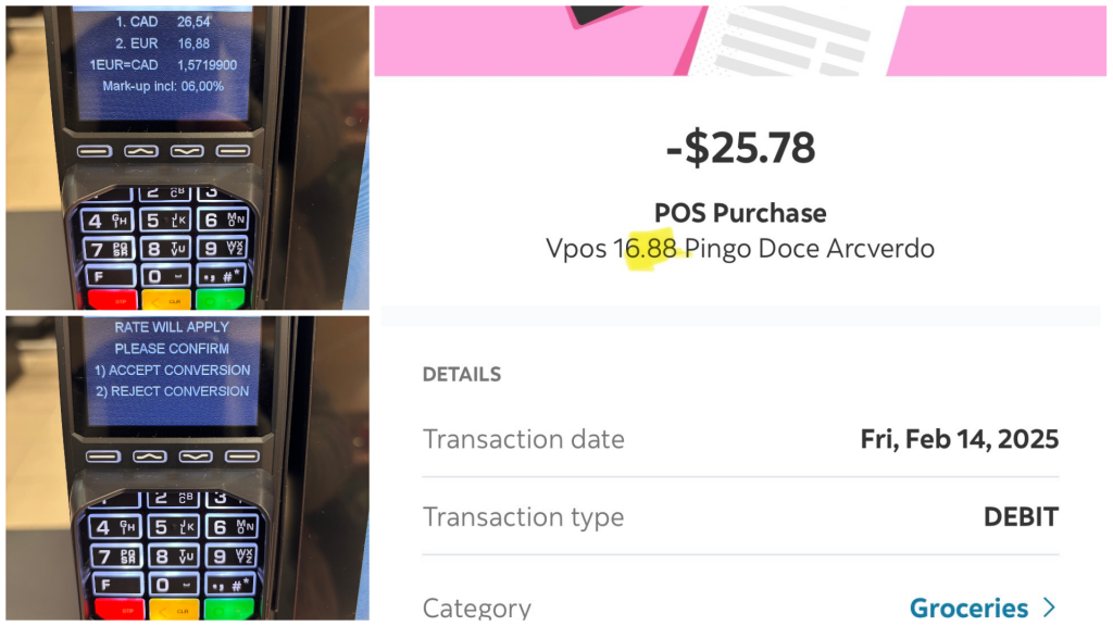 - Mesmo com a taxa, poupou 26,25 $ CAD face à oferta do multibanco — apenas por ter recusado a conversão.